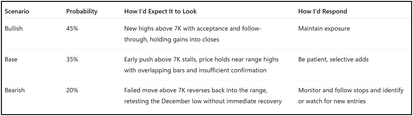 Rather than focusing on headlines and narratives, the key question is whether this early January breakaway sees strong and sustained upside follow-through, or whether it fades back into the prior range.
