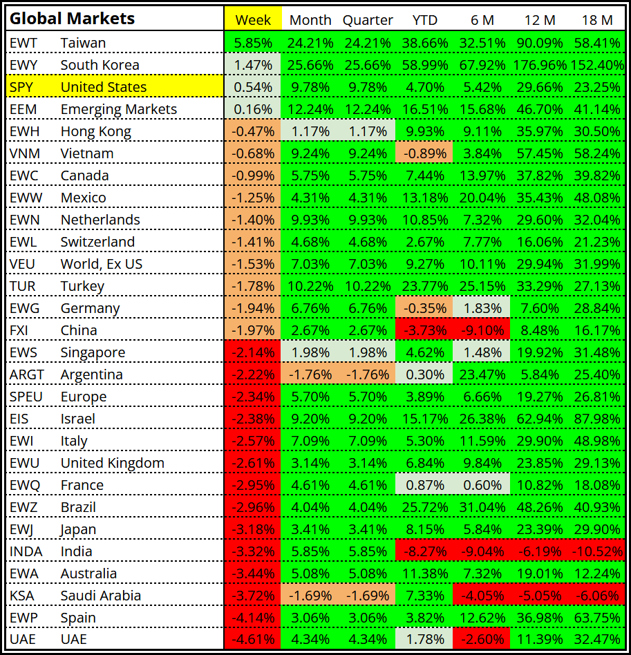 The performance map shows how concentrated the strength was last week.
