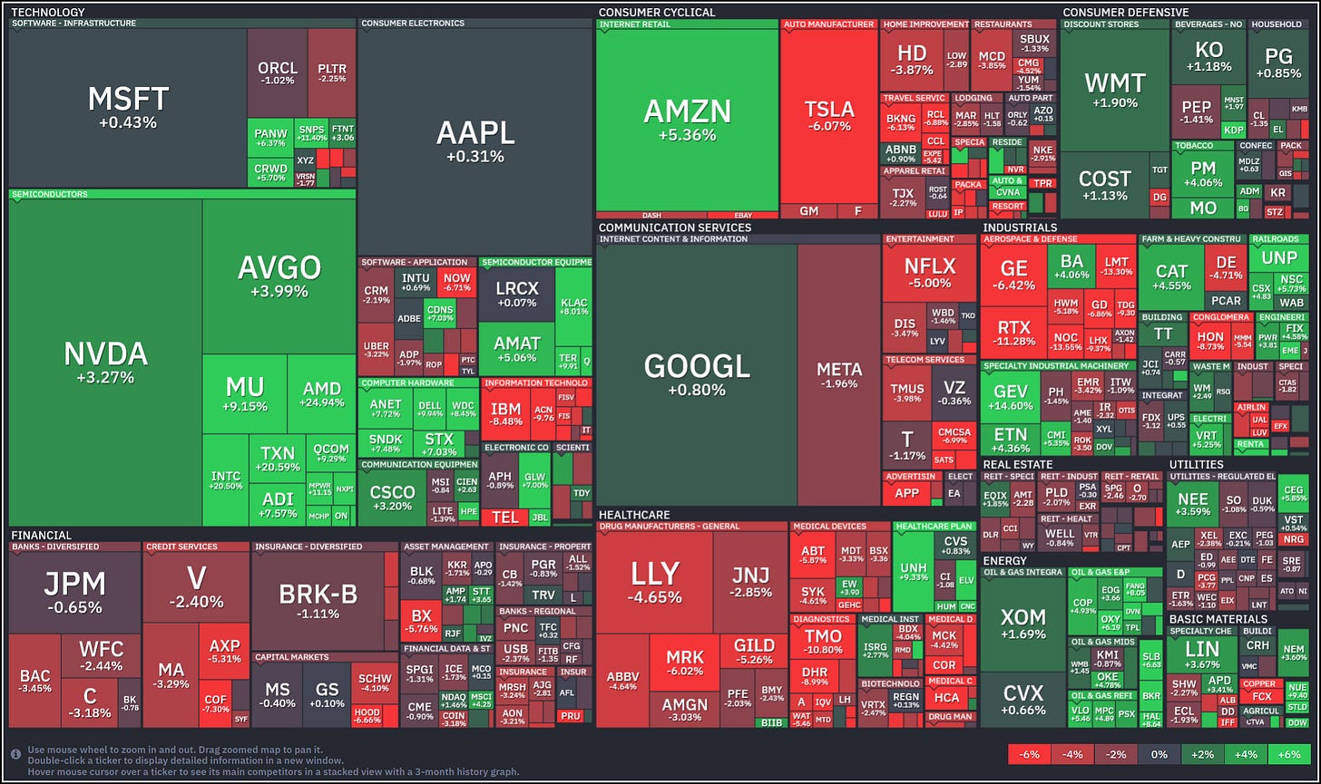Renewed confidence in the AI infrastructure cycle. Strong demand and solid earnings across everything connected to the Artificial Intelligence Revolution are being bought aggressively again, overcoming prior concerns about sustainability and valuations potentially setting up a bust to this massive boom.