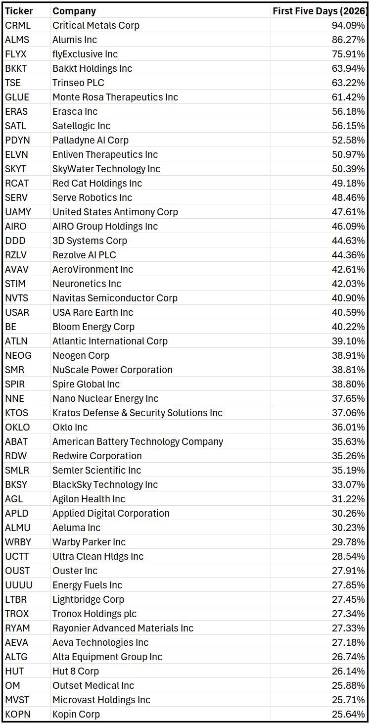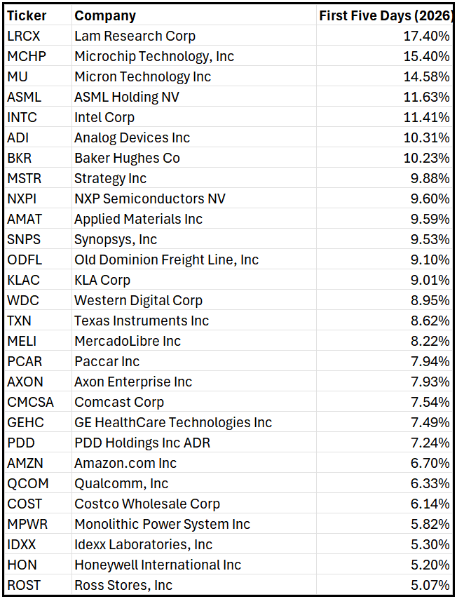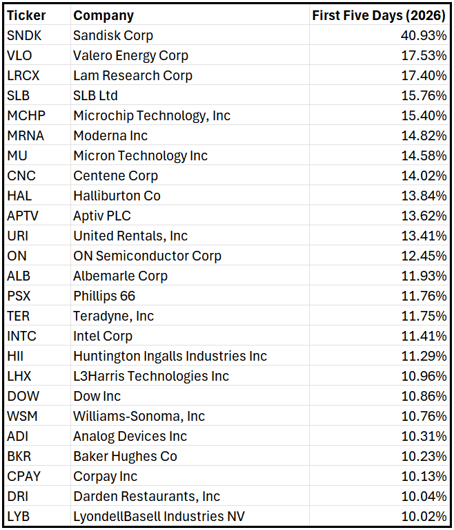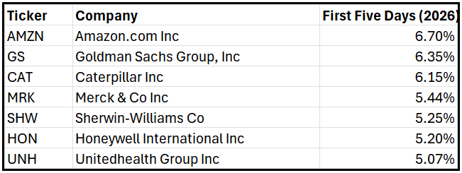 As you see, the S&P 500 is up +1.11% for the first five days of the year.