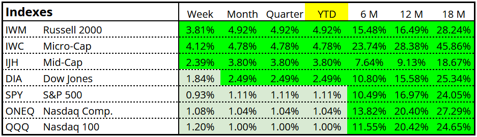Small/Mid Caps & Emerging Markets Up More Than +10%